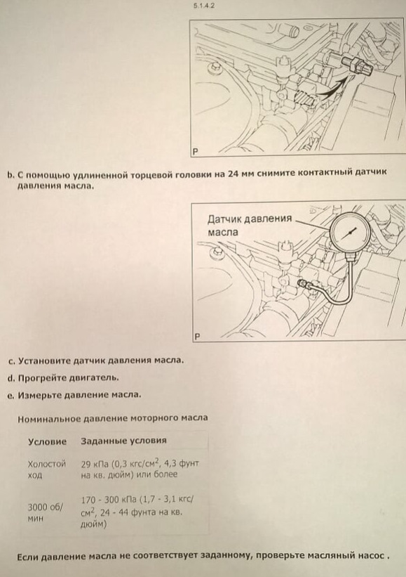 Давление масла камри 2.4