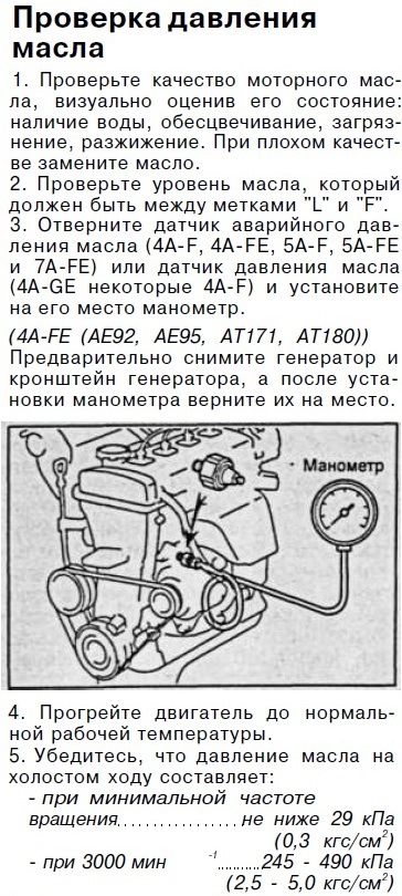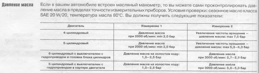 Давление масла в двигателе в барах