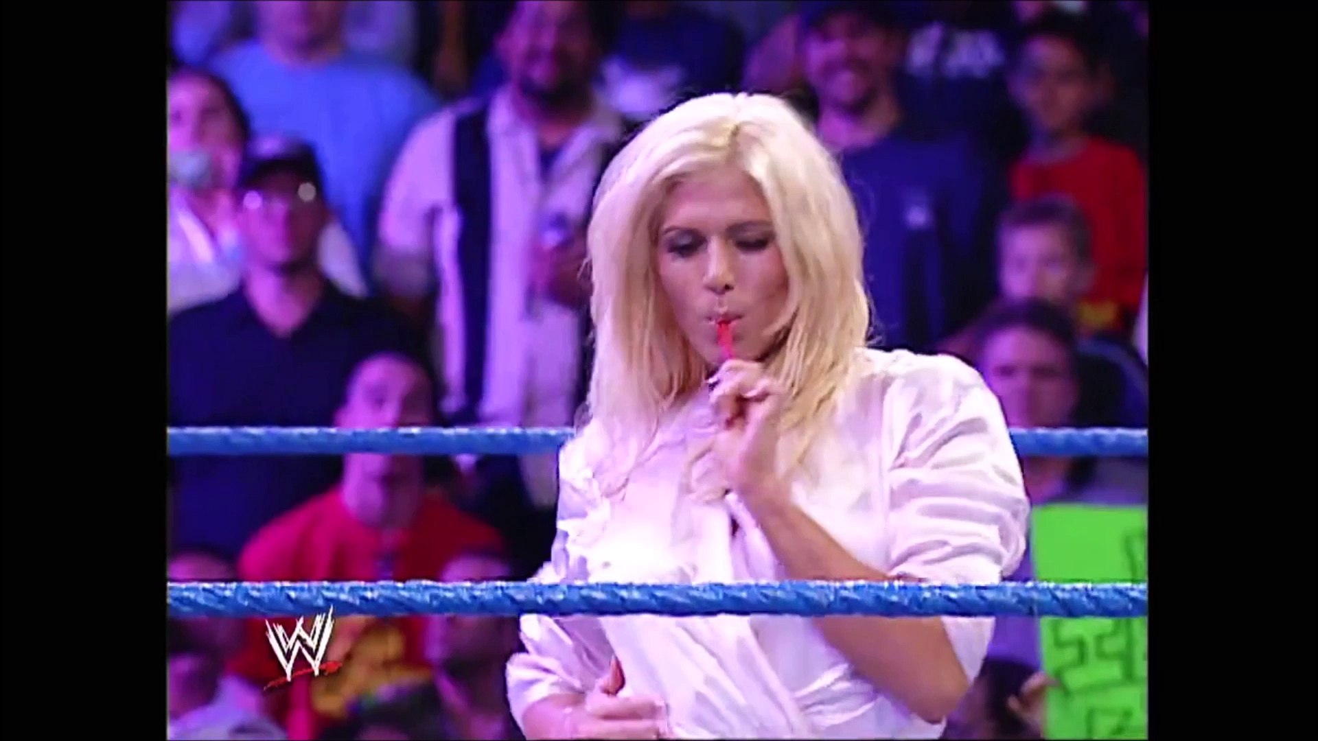 Torrie Wilson, Dawn Marie and the referee find themselves in a compromising position at No Mercy on October 20, 2002 .GET YOUR 1st MONTH of WWE NETWORK for FR . . .