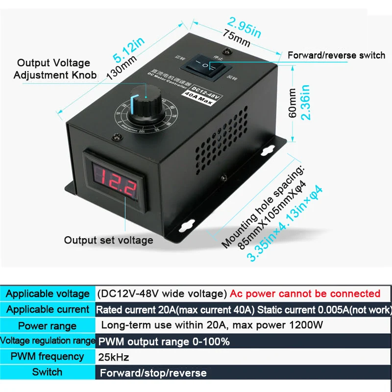 qteThBnpЗдесь вы сможете купить Dc 12-48V motor speed controller 40A stepless speed control forward and reverse controller PWM Motor voltage regulator с бесплатной доставкой до вашего почтового отделения.