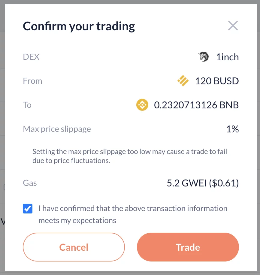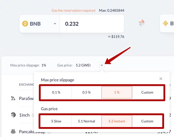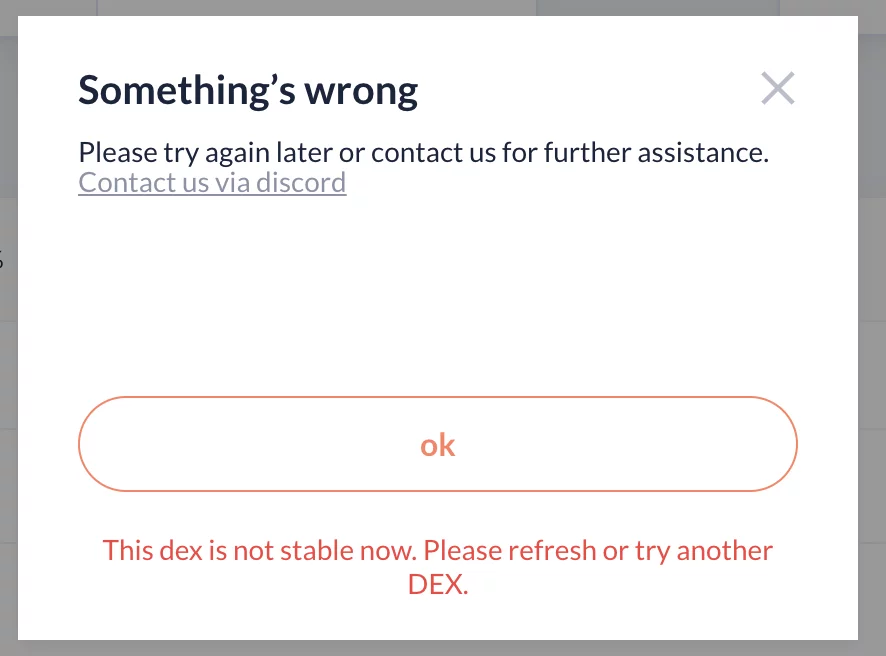 Иногда можно столкнуться с ошибкой, в таком случае просто попробуйте выполнить операцию позже с тем же DEX или выберите другую платформу для обмена.