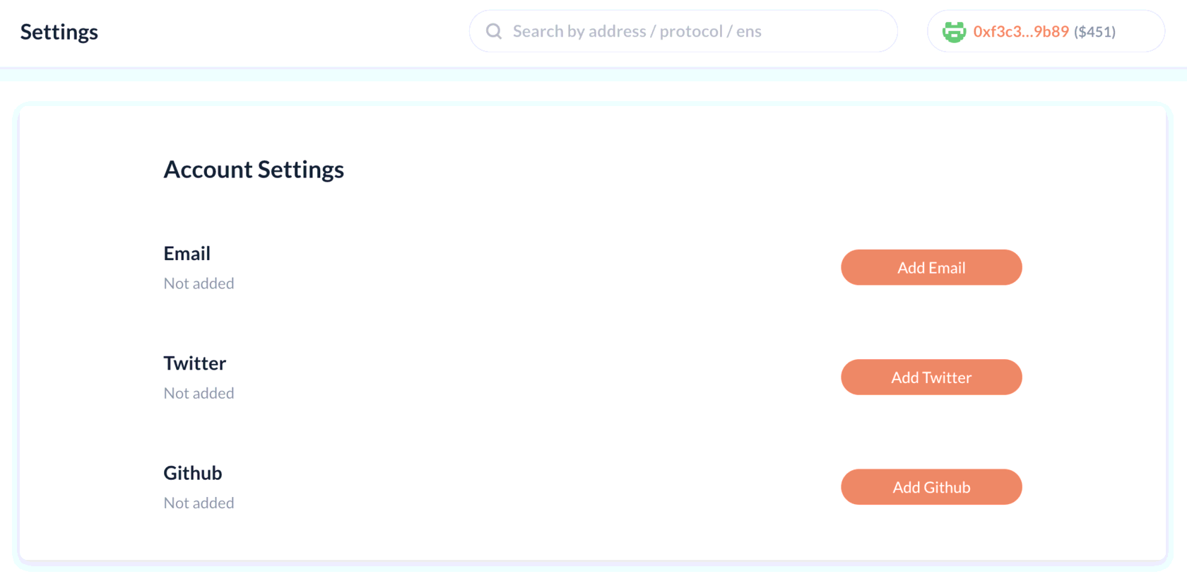 3. Далее переходим в раздел "Settings" и производим подтверждение своей электронной почты, аккаунтов в Twitter и GitHub (при наличии). Это не является обязательным условием, но желательно. Подтверждение почты происходит путем ввода полученного кода, а для твиттера и гитхаба нужно добавить ссылки на соответствующие профили в личном кабинете.