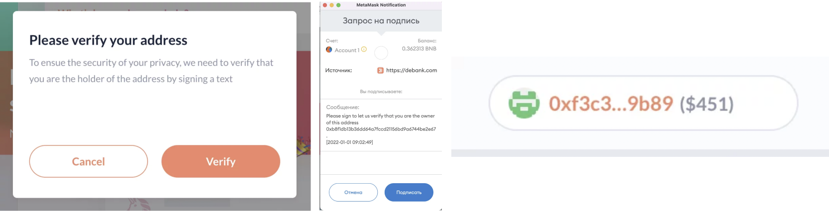 2. Далее верифицируем свой кошелек и подписываем транзакцию Метамаском.