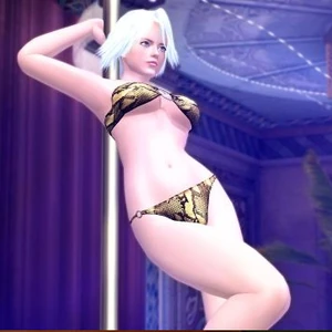 Ayane's pole dance scene from Dead or Alive Xtreme 2 . She's wearing one of Christie's bunny suits .