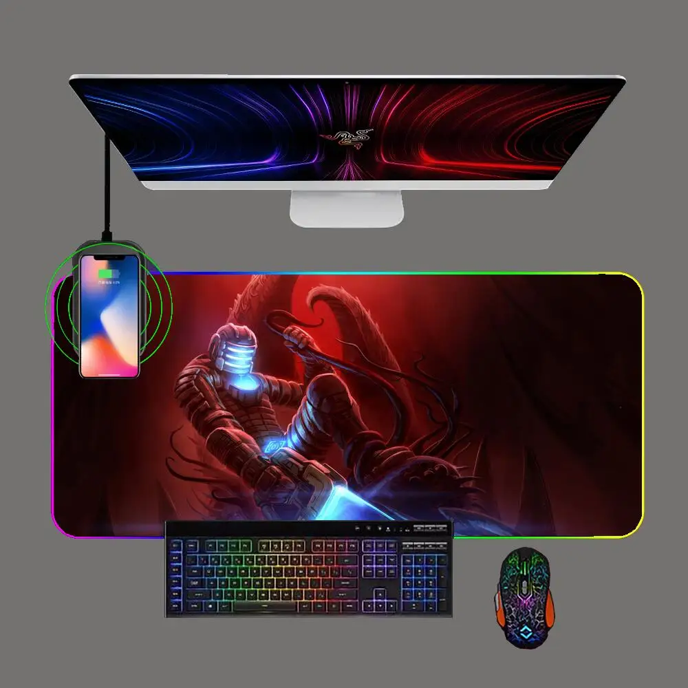 "Dead Space Phone Wireless Charging Gaming RGB Large Mouse Pad LED Anime Keyboard Gamer Computer Offices Mousepad Pc Mat Carpet" * Buy Now With Free Shipping Just For $34