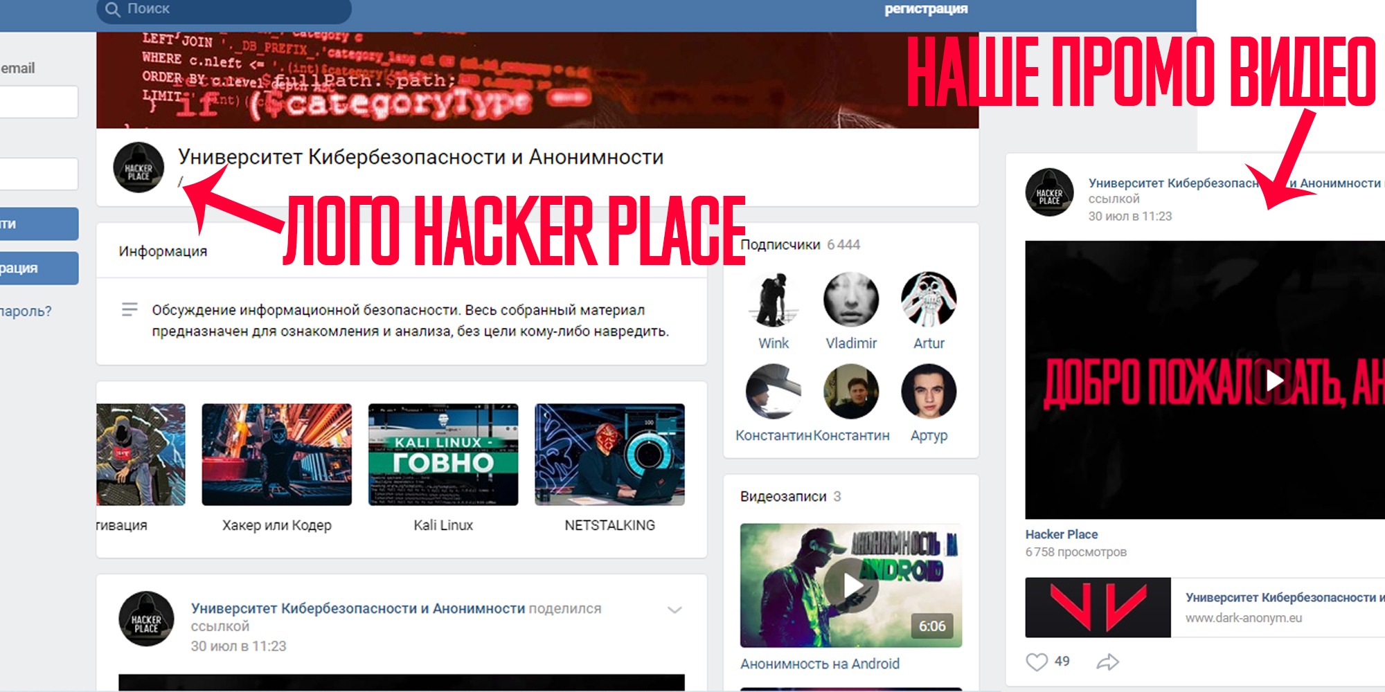 Данный субъект имел группу в ВК, использовал логотип Hacker Place и наши промо-видео в своих грязных целях.