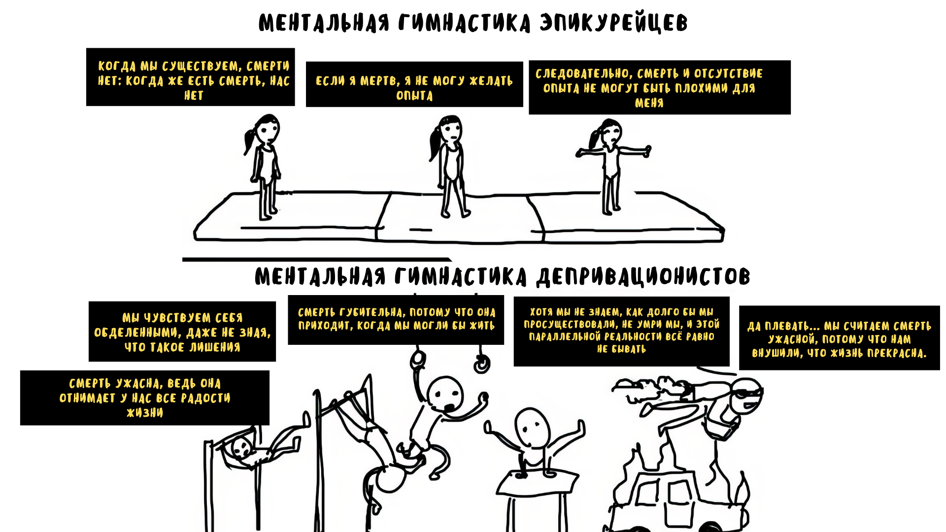 В вопросах, касающихся смерти, философская мысль, по-видимому, застряла в темных веках атавистического примитивизма. Хотя "депривационисты" (сторонники теории лишения) и обладают изысканным умением манипулировать словами, полученным в ходе академического образования, их сложные конструкции служат лишь декоративным фиговым листком, скрывающим их собственные первобытные страхи и экзистенциальную неуверенность.