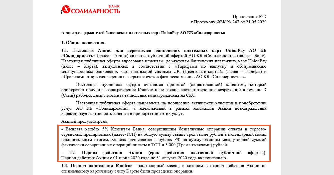 Дебетовая карта солидарность