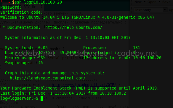 Введя последовательно пароль , а потом сгенерированный код с нашего Google Authenticator, мы успешно авторизируемся по ssh.