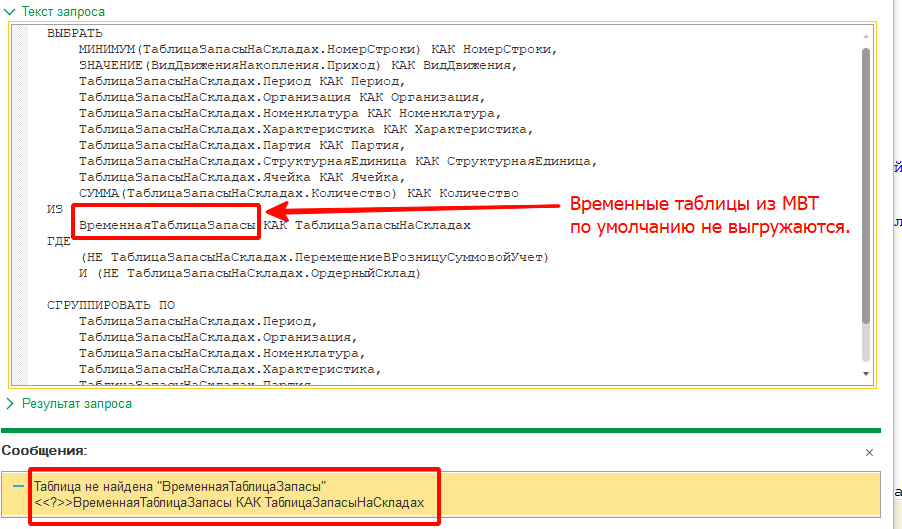 ИЛИ НЕ ТаблицыМВТДляИсключения.Найти(ИмяВременнойТаблицы) = Неопределено Тогда