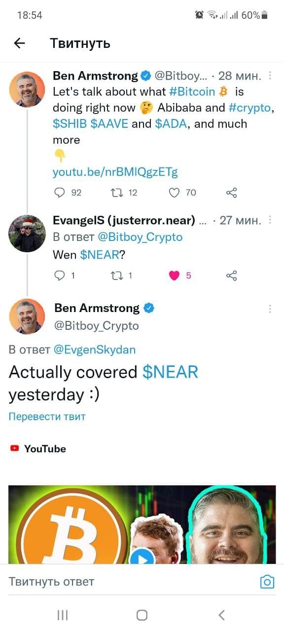 We maintain a lively discussion of the Near ecosystem in popular channels. Starting from the cost of the Near token, ending with its technological features, and often bloggers themselves answer us and support Near — and then make content about Near.