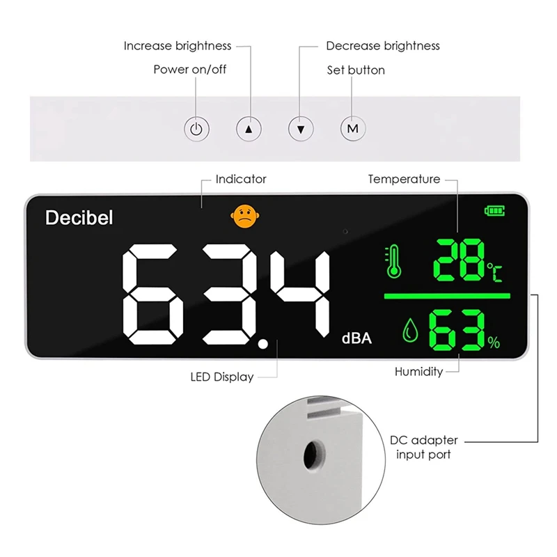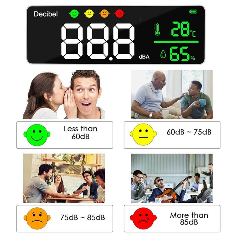 hnbXCfsPfHere you can buy Decibel Meter Wall Hanging Sound Level Meter Humidity Meter With Alarm Icons Indicator Wide Applications For Classroom with free delivery to your post office.