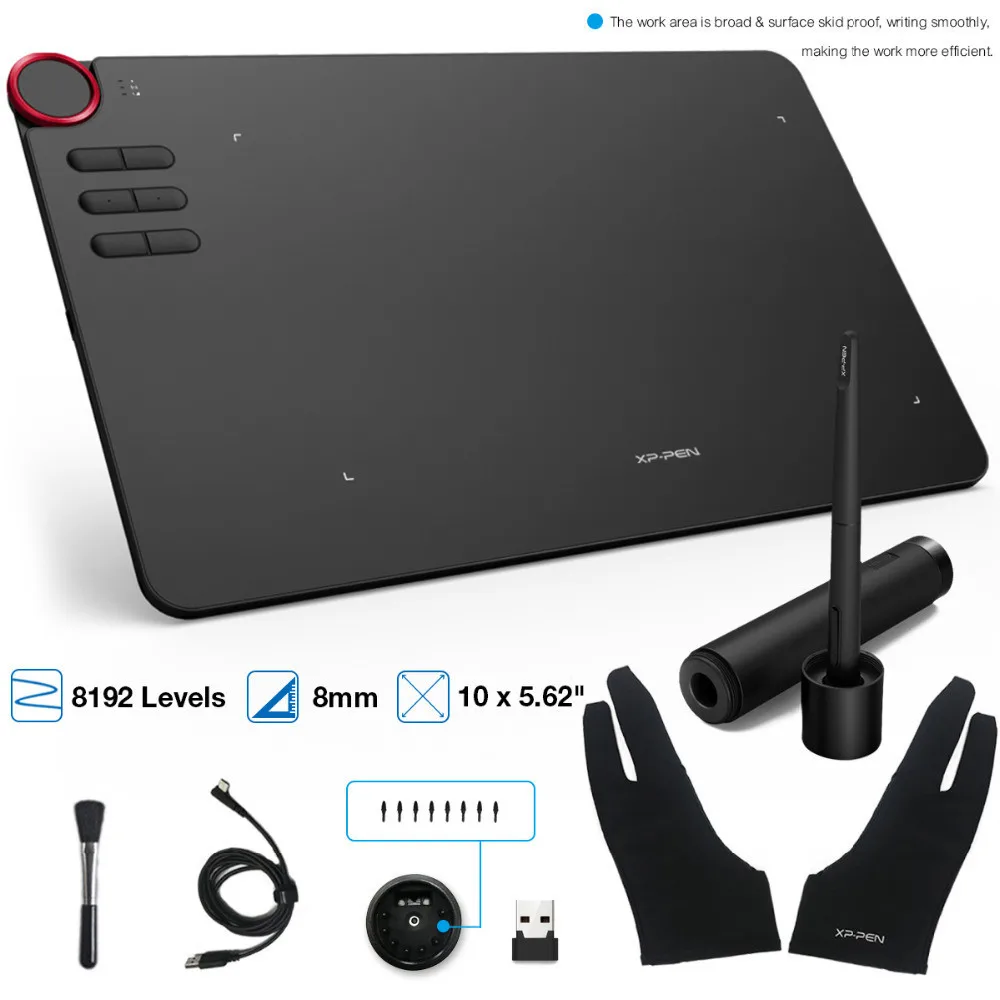 XP-Pen Deco Pro Series digital art tablet for Professional artists and graphic designers . the battery-free stylus features of 60 degrees of pen tilt function and 8192 Pressure levels , it come with Active working Area of 9 x 5 inches for small version an