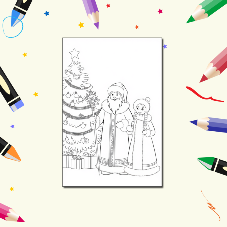 Дед Мороз И Снегурочка Картинки Раскраски