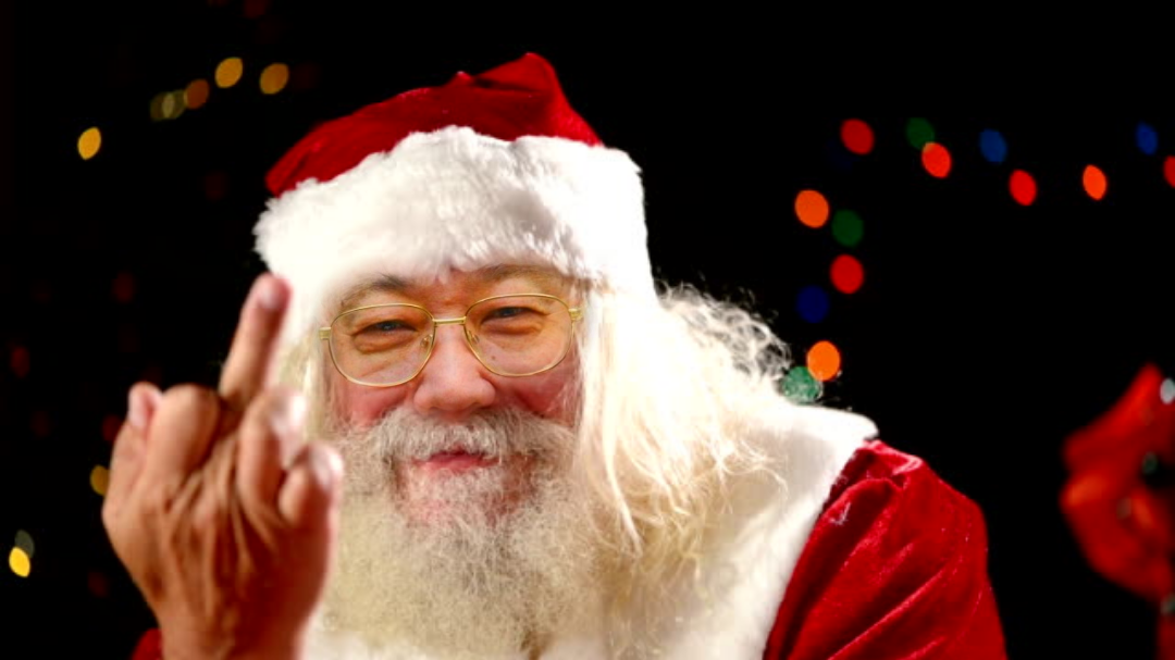Дед мороз который показывает 129 фотографий