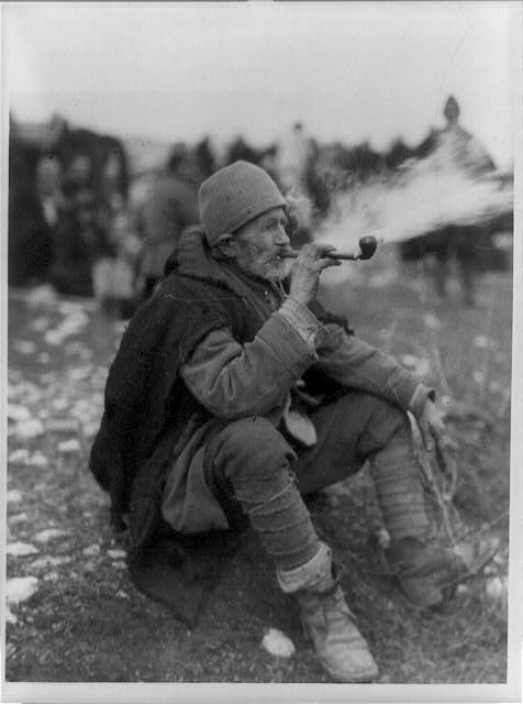 Дед с трубкой в дыму