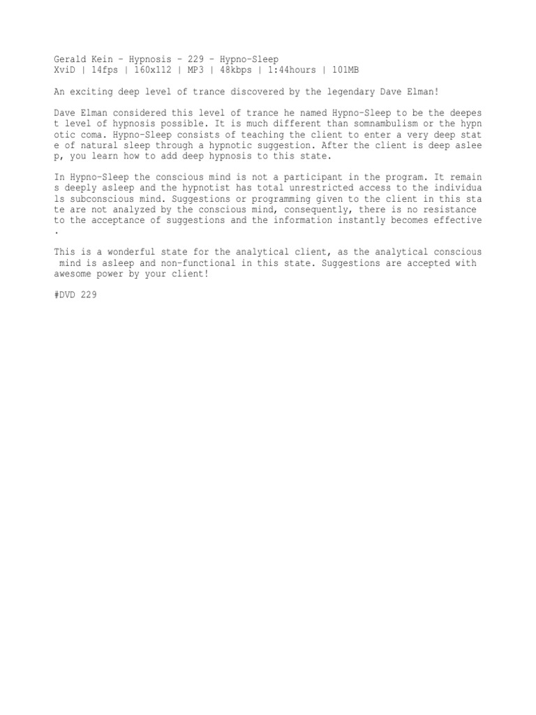 This is a very, very deep induction . I uses nested, story based induction to get you deeper and deeper into trance . The multiple layers of story-driven deepening can cause amnesia, even without suggesting it . This is an empty induction .