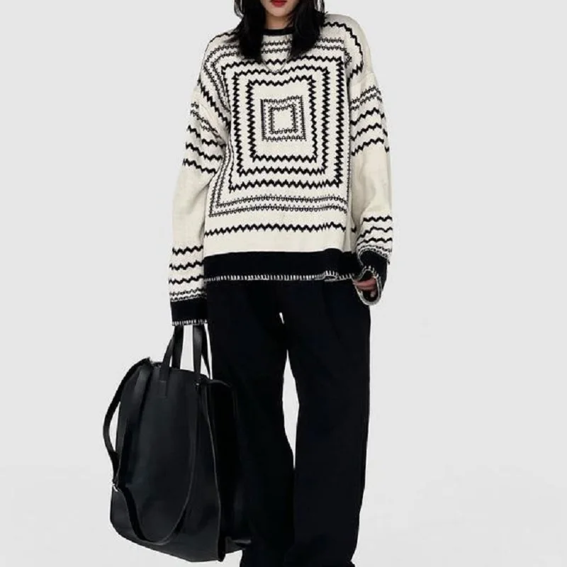 «Deeptown Korean Style Knitted Sweater Women Oversize Geometric Pattern Striped Streetwear Pullover Long Sleeve Jumper Fall 2021» по лучшей цене на рынке! Всего за 33$ (3135рублей)