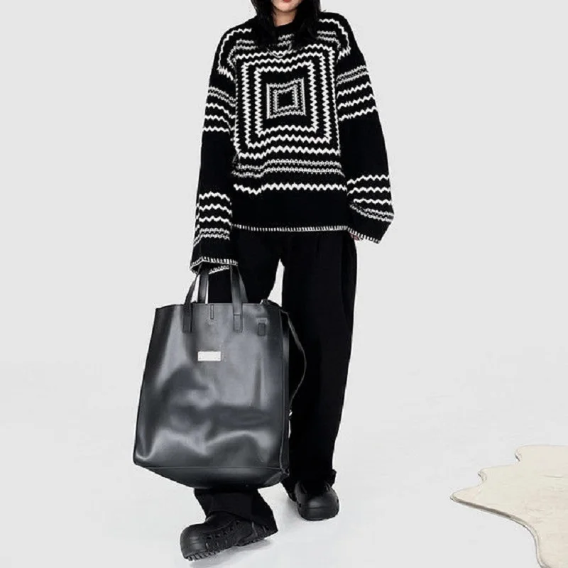 GdyLUkFPaДолго искали Deeptown Korean Style Knitted Sweater Women Oversize Geometric Pattern Striped Streetwear Pullover Long Sleeve Jumper Fall 2021, но не могли найти? Предоставляем вашему вниманию Deeptown Korean Style Knitted Sweater Women Oversize Geometric Pattern Striped Streetwear Pullover Long Sleeve Jumper Fall 2021 по лучшей цене на рынке!