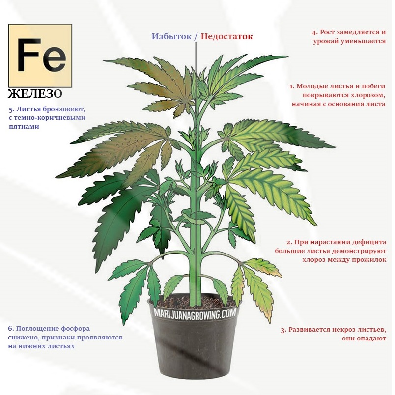 Основные симптомы дефицита железа в конопле: