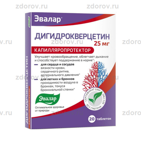 Изменяется цена Дигидрокверцетина в зависимости от региона и города, где делается покупка . В московских аптеках цена препарата Дигидрокверцетин Эвалар может составлять 150 — 200 руб . за 20 таблеток по 25 мг или 350 — 400 руб . за 60 таблеток . Интернет-аптеки России Казахстан ЗдравСити