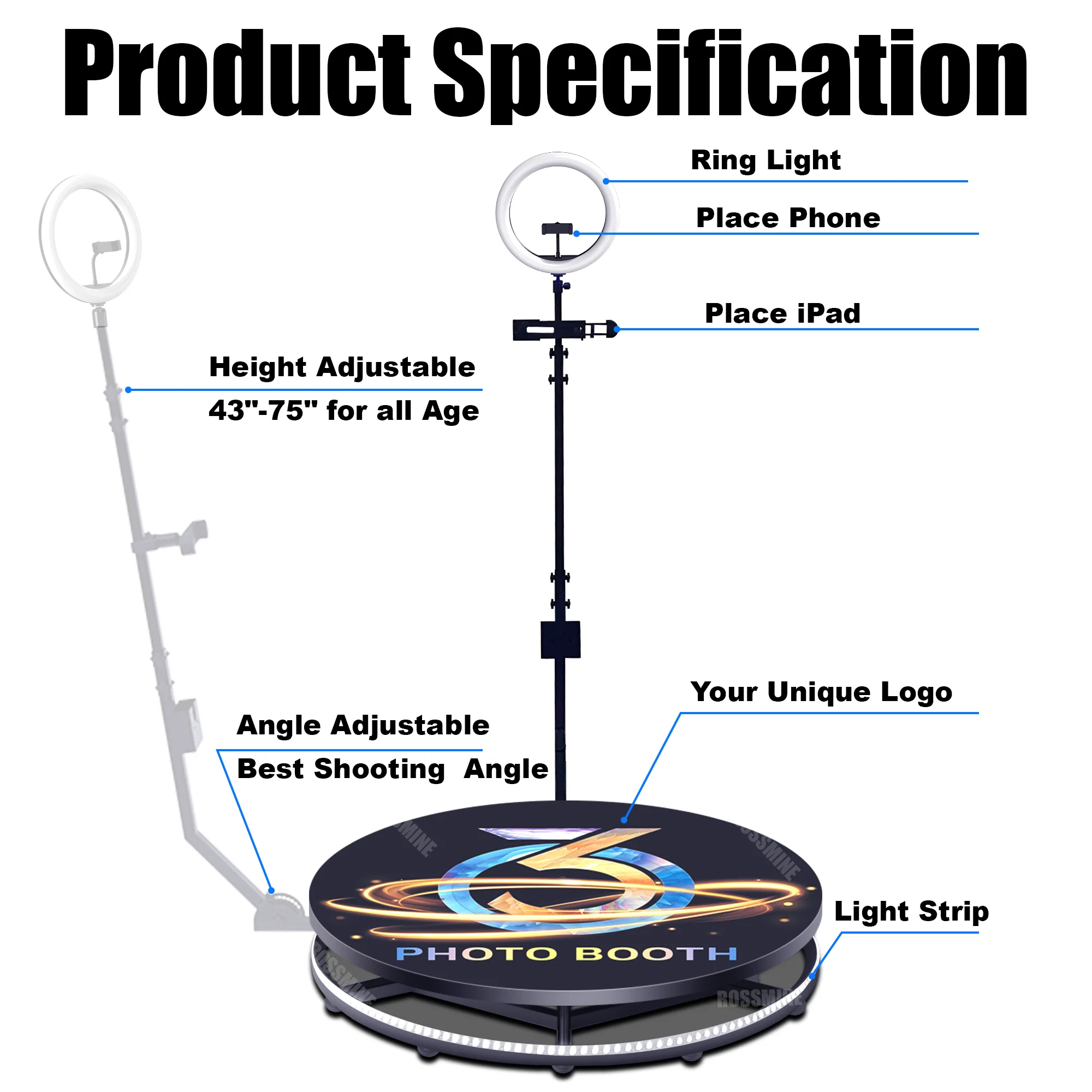 GPTMusAzjuHere you can buy Degrees Automatic 360 Photo Booth Video Booth Platform Rotating Machine for Photo Booth 360 60 90cm Spinner for Wedding Event with free delivery to your post office.