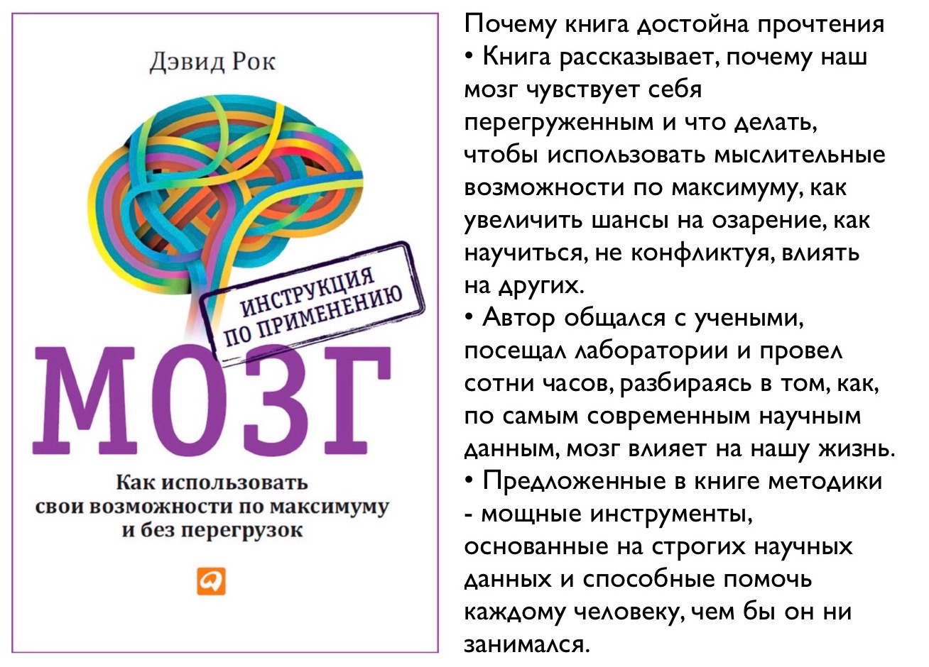 Эта книга повысит вашу производительность на работе, ознакомив с недавними важными открытиями, связанными с исследованием человеческого мозга. Вы научитесь сосредотачиваться лучше и трудиться продуктивнее, потому что поймете, как работает при этом — за работой — ваш собственный мозг. Только познав мозг, можно его изменить. (Как он может изменить себя через понимание механизмов собственной работы, вы тоже узнаете из этой книги.)