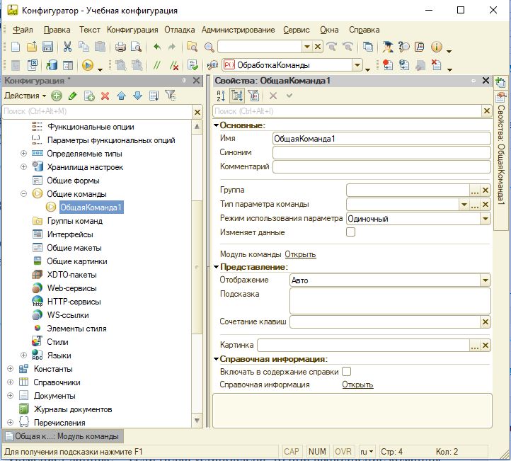 Действие команды 1с
