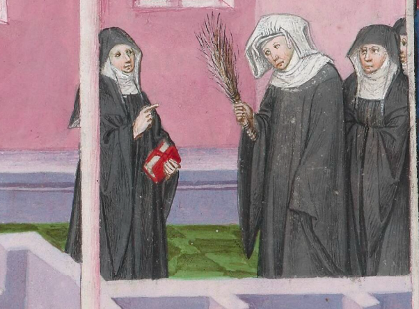 Средневековые мужские трусы часто представляли собой кусок ткани с тесемками по бокам (для завязывания на бедрах). Конечно, снова в оригинале Боккаччо здесь появляется "le brache „- то есть наша настоятельница просто надела на голову трусы священника, а не его”штаны". Глянем на миниатюру в рукописи и все становится ясно. Кстати, мы также должны помнить, что трусы были частью мужского наряда (отсюда и унижение настоятельницы - женщины трусиков не носили, поэтому свои бы на голову не надели).