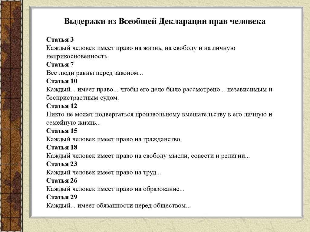 Декларация оон статьи