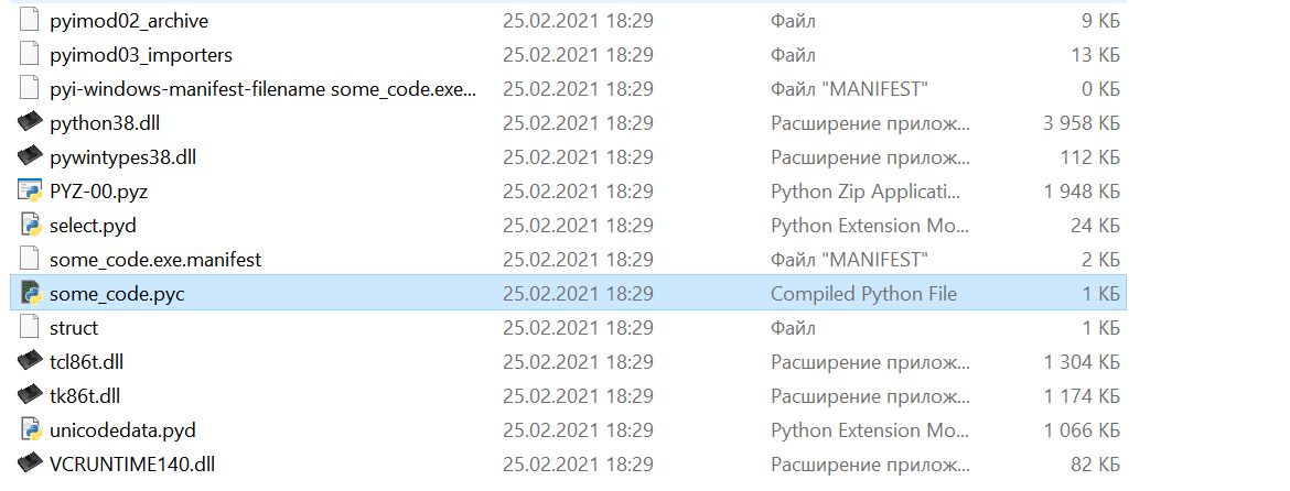 В итоге у вас появится папка exe.exe_extracted. Переходим в неё и ищем файл с названием как программа, которую вы взламываете, только у этого файла не будет расширения. Добавляете к нему расширение pyc (Python compiled).