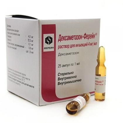 Дексаметазон - синтетический гормон коры надпочечников, глюкокортикостероид (ГКС), метилированное производное фторпреднизолона . Оказывает противовоспалительное, противоаллергическое, десенсибилизирующее, противошоковое, антитоксическое и иммунодепрессивное действие .