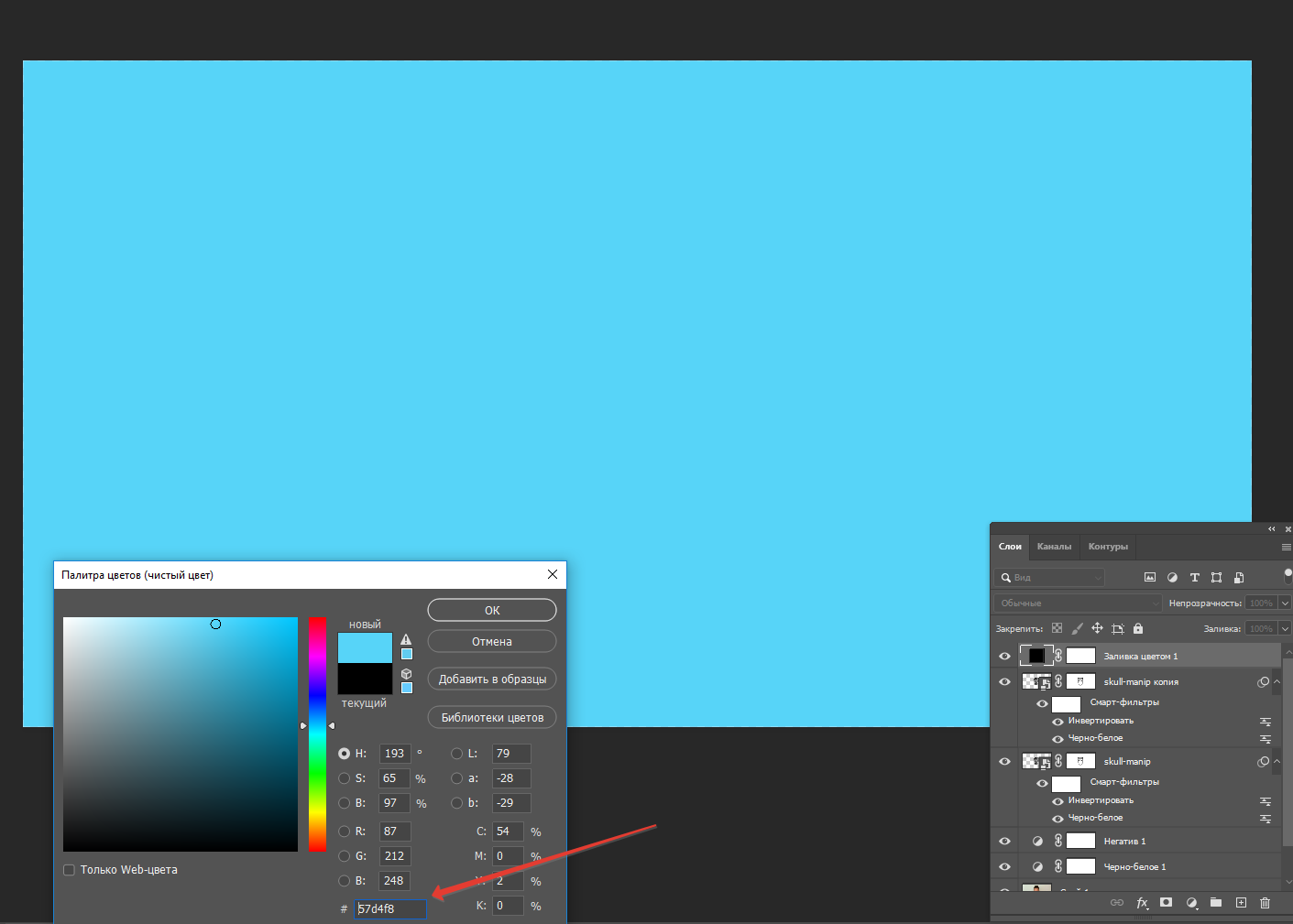 Теперь выбираем слой с черепом и дублируем его (Ctrl + J)