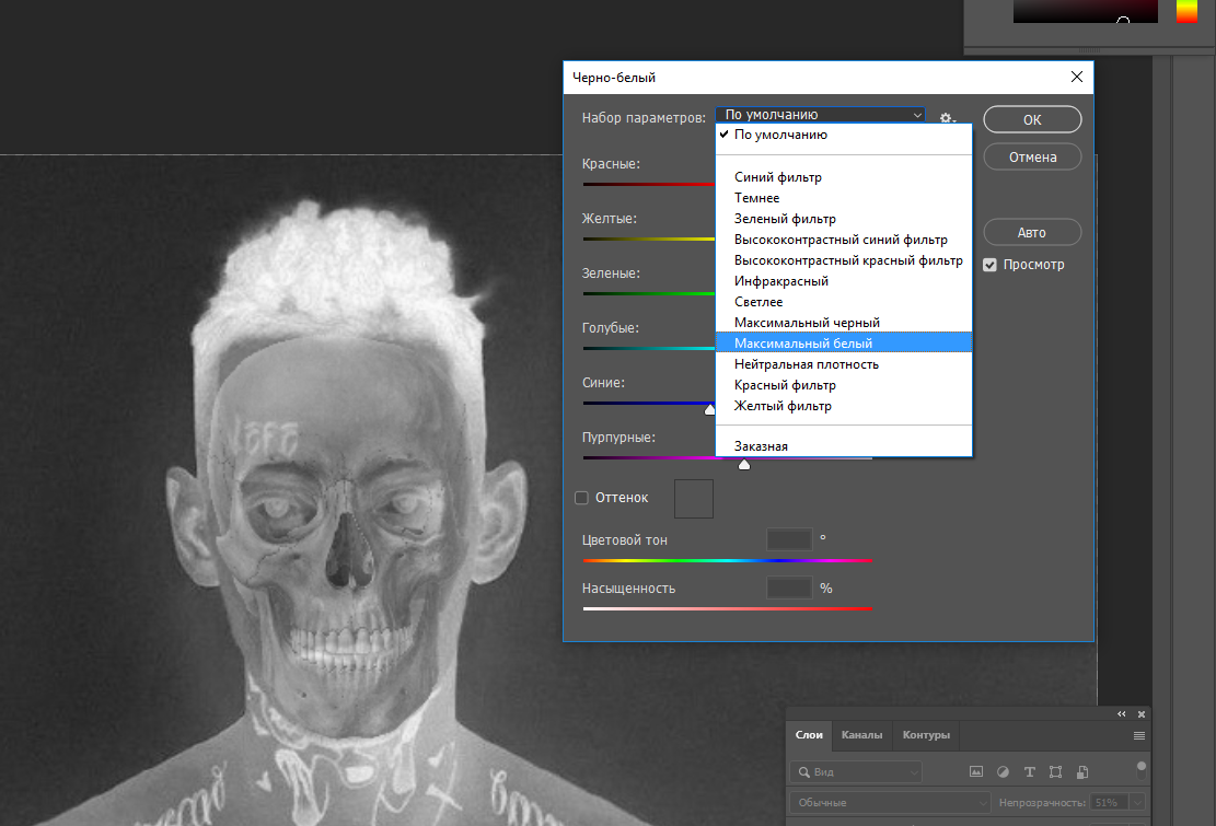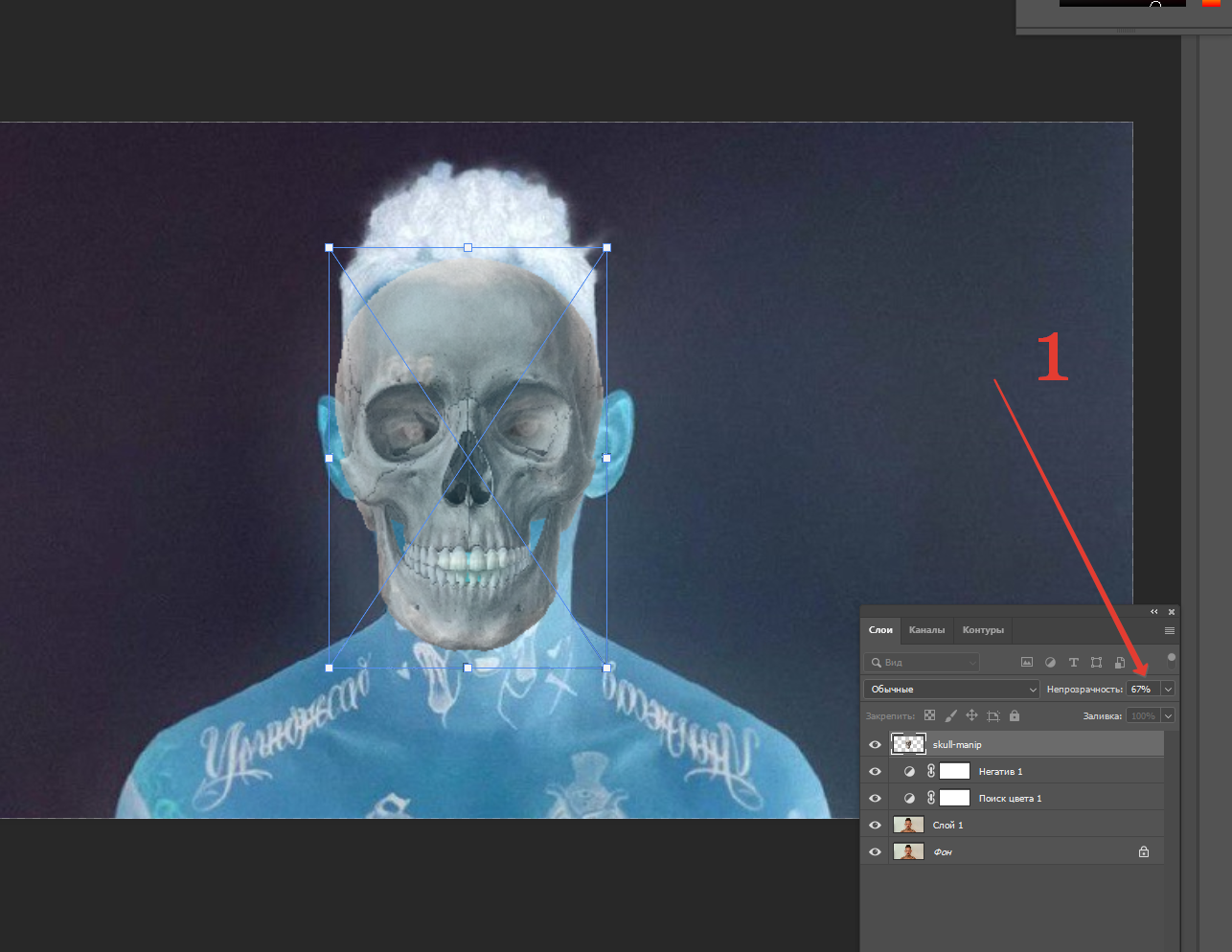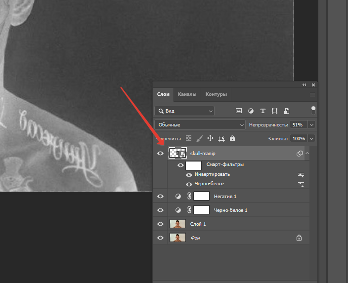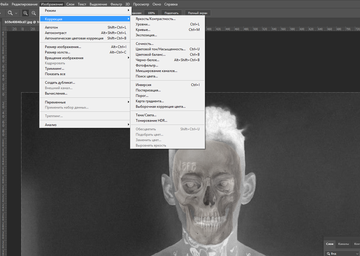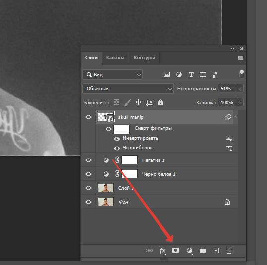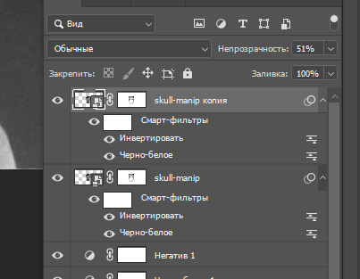 Теперь выбираем слой с черепом и нажимаем Ctrl + I чтобы инвертировать его.