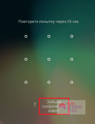заблокирован при неправильном вводе графического ключа . . .