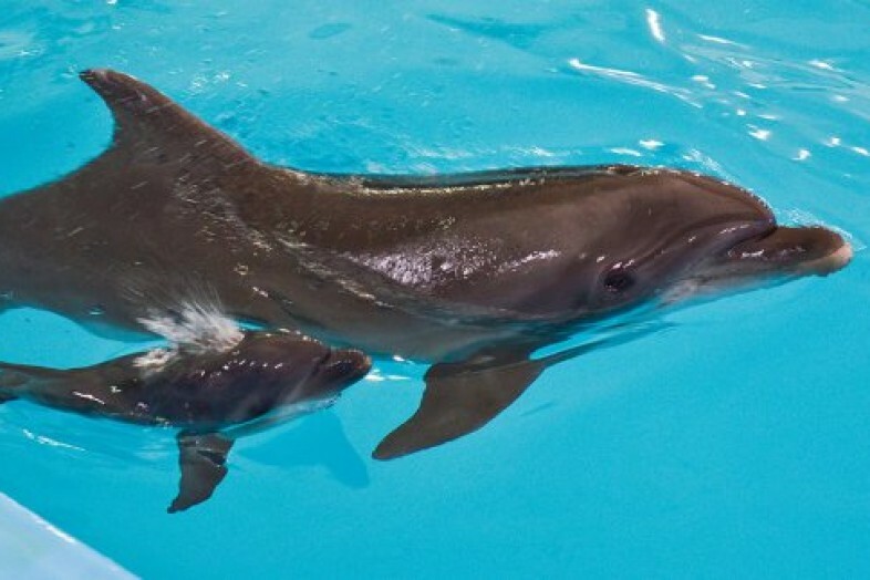 Дельфин Кормит Детеныша Молоком Фото