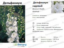Дельфиниумы Benary's Pacific — высокие (до 180 см), подходят для солнечных и полутенистых мест . Цветки крупные, полумахровые, собраны в конусовидное соцветиея . Цветение в июне-июле, обрезка цветоноса стимулирует повторное цветение в августе-сентябре . Используются для фона на заднем плане и для срезки . Характеристики Основные Бренд/Производитель