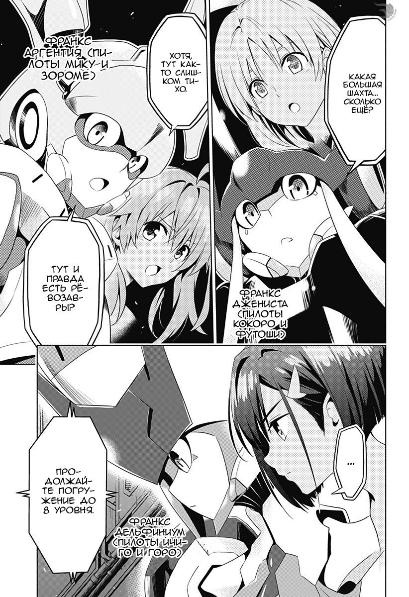 Известные франксы Дельфиниум — Пилоты Итиго и Горо . Является командующим франксом во время исполнения миссий . Аргентеа — Пилоты Дзоромэ и Мику . Гениста — Пилоты Футоши (раньше), Мицуру и Кокоро . Хлорофитум — Пилоты Мицуру (раньше), Футоши и Икуно . Стрелиция - Пилоты неназванные тычинки (раньше), 081 (раньше), Хиро и Ноль Два .