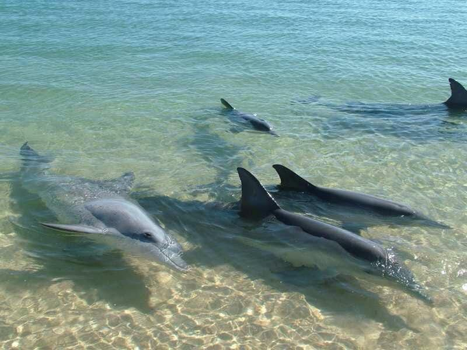 Дельфины близко к берегу