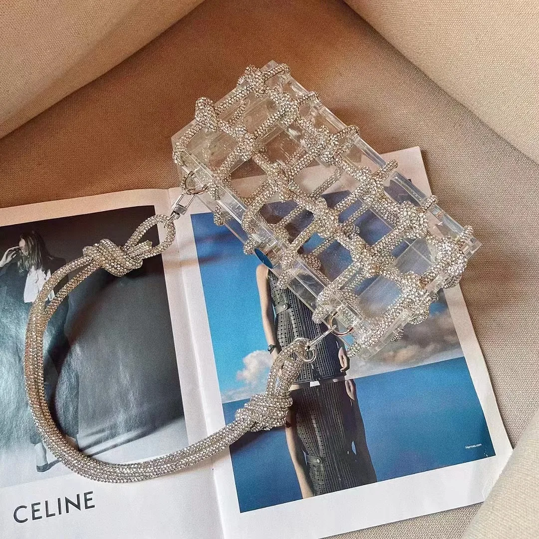 Delicate Diamond Handbag Niche Design Transparent Acrylic Diamond Small Square Bag High Quality French Rhinestone Women's Bag - Купить с бесплатной доставкой