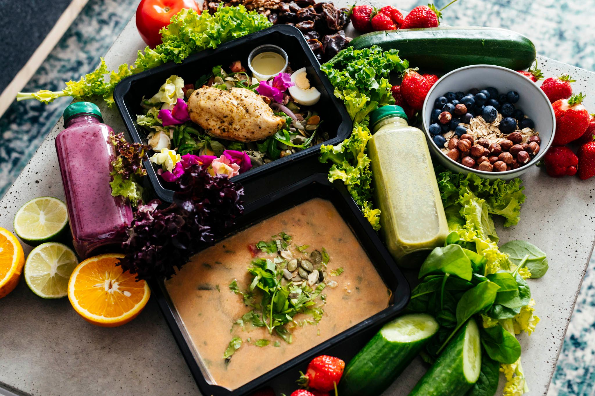 Содержание углеводов, белков и жиров в рационе составляет, соответственно, 60%, 10% и 30%[2]. Но основной секрет в том, что жиры и углеводы в рационе для похудения должны быть правильными. А именно – макароны из твёрдых сортов пшеницы, бобовые, множество видов цельнозернового хлеба [3]. Так же оливковое масло, авокадо, жирная рыба. Прибавьте к этому салат из свежих овощей и зелень – и здоровый обед на столе.