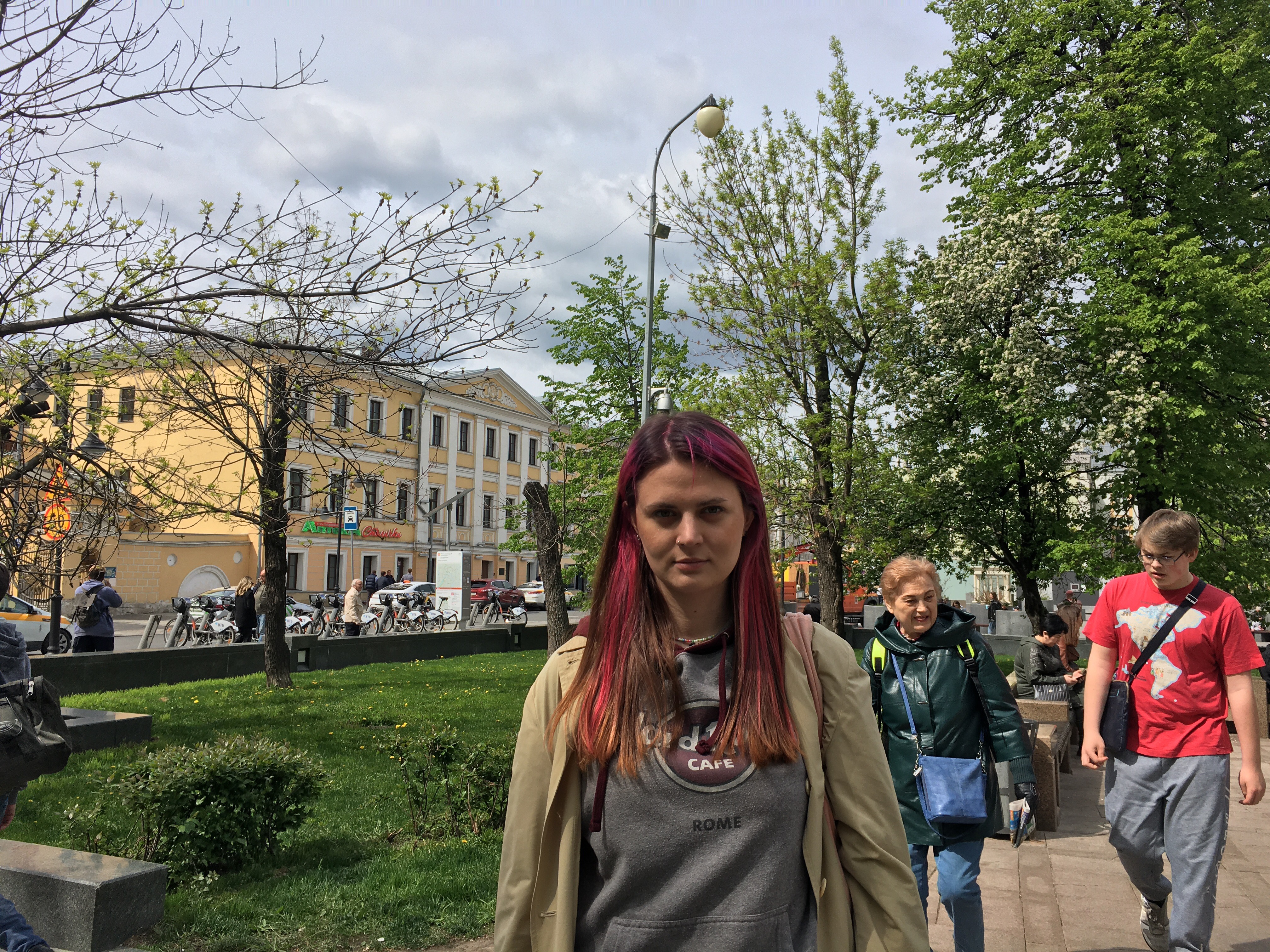 «Я увлекаюсь политикой последние пару лет. Работала на оппозиционных кандидатов на последних выборах в Государственную Думу. В последний раз я работала координатором агитаторов в штабе Льва Шлосберга. После того, как его сняли с выборов, я поехала с ним в Псков работать с кандидатами от псковского «Яблока». После выборов меня задерживали на митинге против фальсификаций в Москве, выписали штраф в 15000 рублей, который я благополучно оплатила. Как раз после этого я решила заняться журналистикой, начала писать в «Скат.media». Раннее я получала высшее образование в этой области, но после второго курса отчислилась по собственной инициативе, чтобы понять, хочу я вообще этого или нет. В этом году я решила восстановиться на третий курс, но теперь я уже не знаю, получится ли. Но мне бы очень хотелось развиваться именно в этой области».
