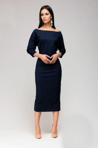 Купить синее деловое офисное платье с рукавом 3/4 недорог…