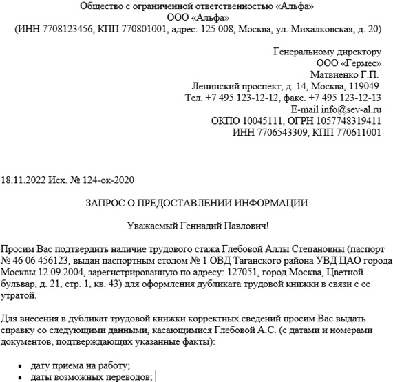 Деловой запрос образец