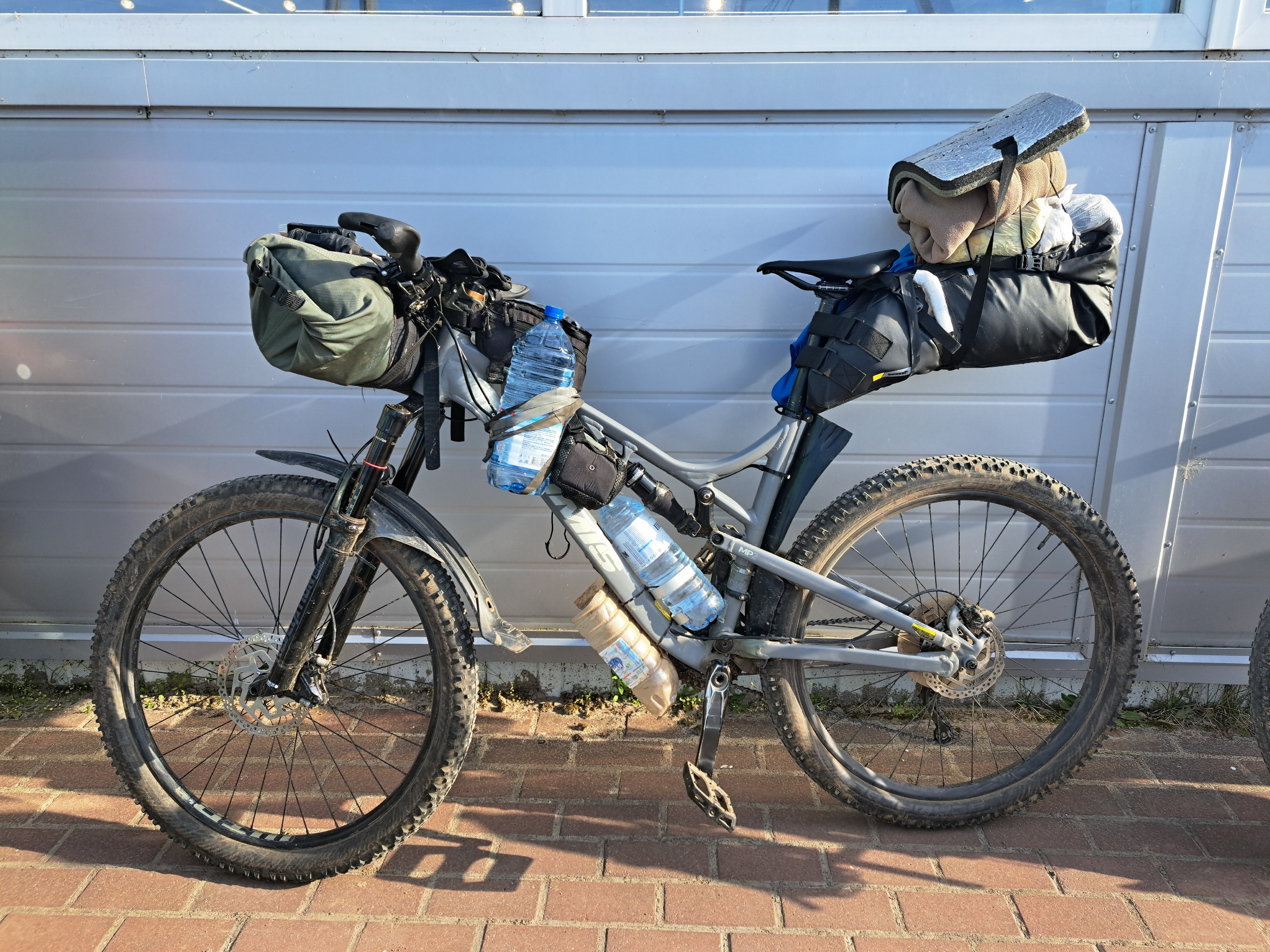 Нарисовали трек покороче к плановой стоянке. В ближайшей Пятёрочке основательно затарились водой дабы в потёмках не искать колодцы по пути. Только у меня 4,5 литра вышло.