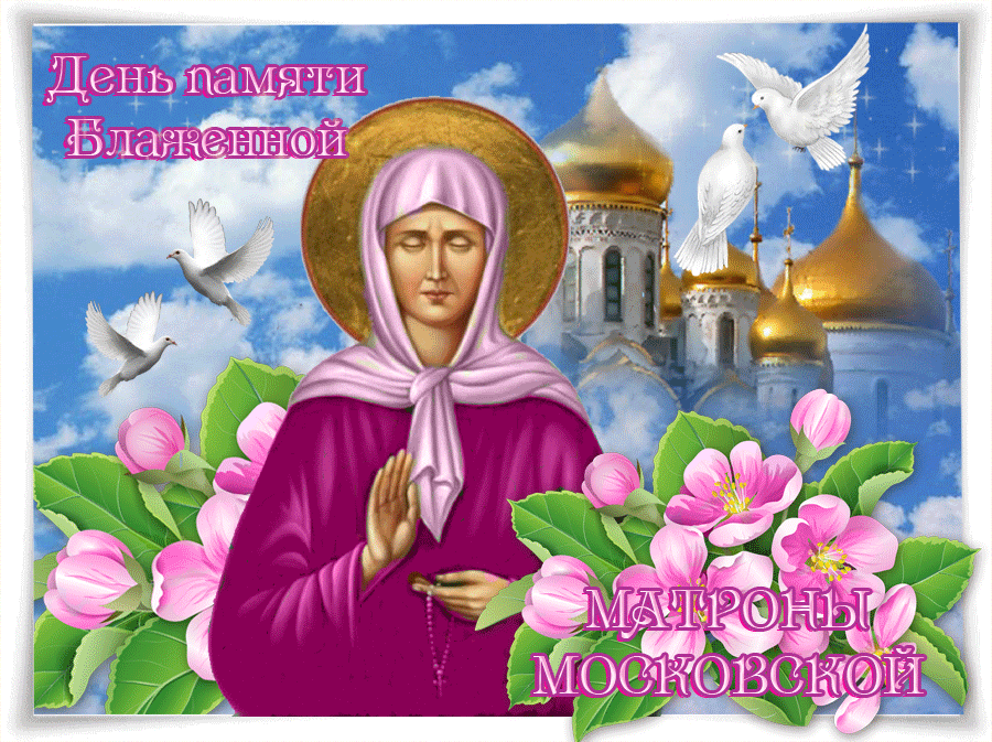 День памяти святой Матроны Московской . Анимационные картинки и поздравительные открытки на День памяти святой старицы Матроны Московской отмечаемый православной церковью .