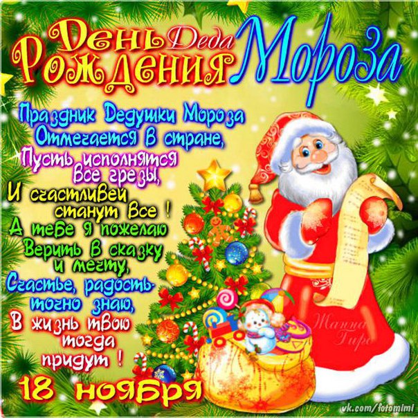 18 ноября праздник - День рождения Деда Мороза . У нас вы найдете самые красивые, прикольные открытки, картинки, поздравления .