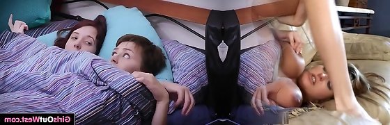 Dickbusige Milf und schlanke Teen teilen jungen Mann