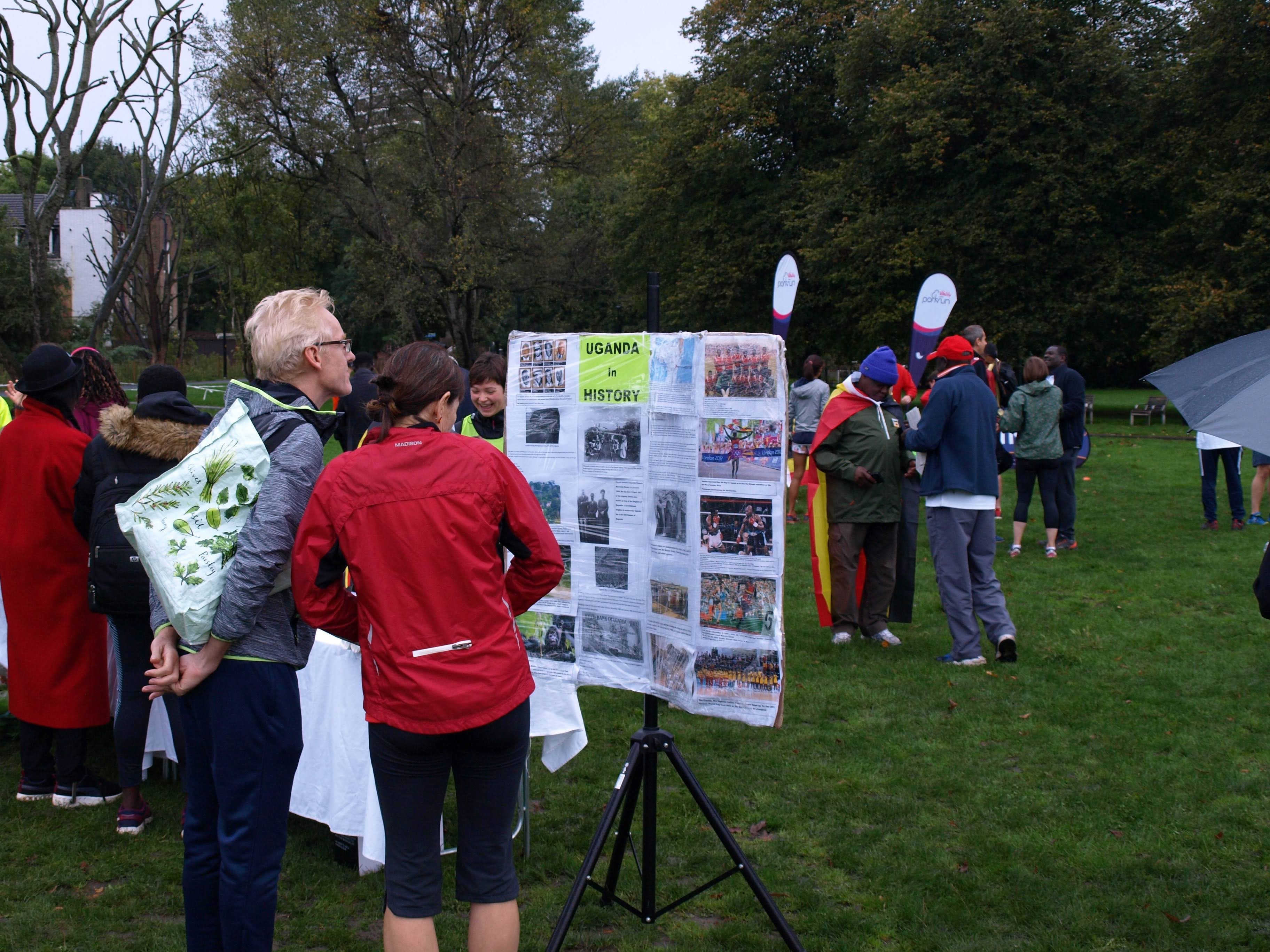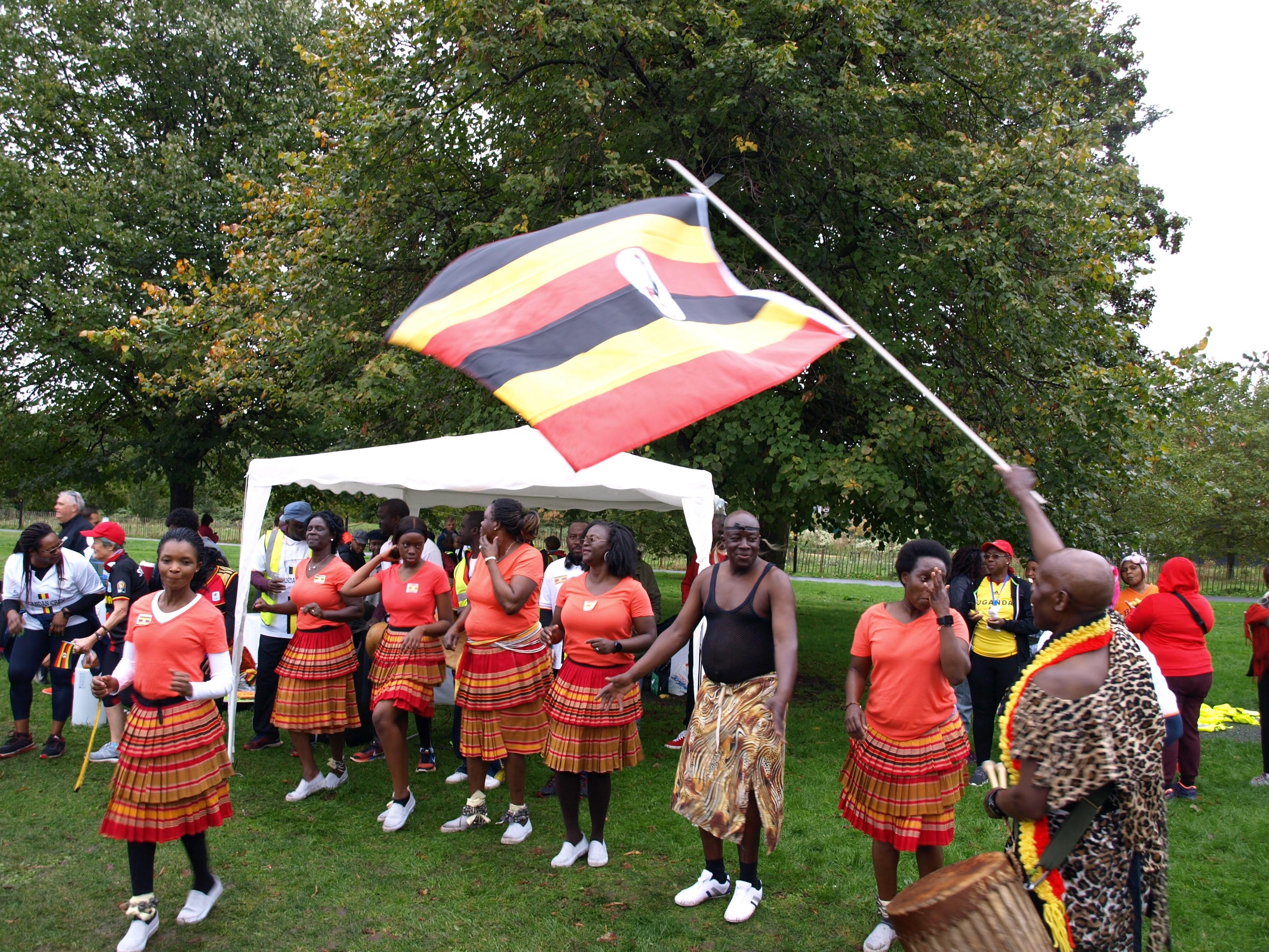 Перед стартом участники могли прочесть историю освобождения Уганды от колониального гнёта Великобритании (да, связь именно в этом). В 1962 году Великобритания предоставила Уганде полную независимость.Людей, которые имеют прямое отношение к празднику собралось весьма много. А поэтому и предстартовый брифинг проводился сразу на двух языках.Английском и Суахили (самый распространённый диалект в Уганде).Надо сказать, что этим праздником в Burgess parkrun чуть не побили собственный рекорд посещаемости. До 611 человек не хватило всего 3-х десятков участников.Зато те, кто был - выглядели очень и очень колоритно!Национальный танец перед стартом.Барабанщики на финише.Многие участники бежали с национальной атрибутикой: в праздничных футболках или с флагом.Замыкающие.Ну и, конечно, море угощений на финише (это же parkrun в конце концов).Большущий хоровод после всего этого (на самом деле один из национальных танцев Уганды).Вот таким в минувшую субботу получился День Независимости Уганды на одном из Лондонских паркранов.
