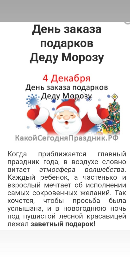 4 декабря - День заказов подарков Деду Морозу (Новогодняя . . .